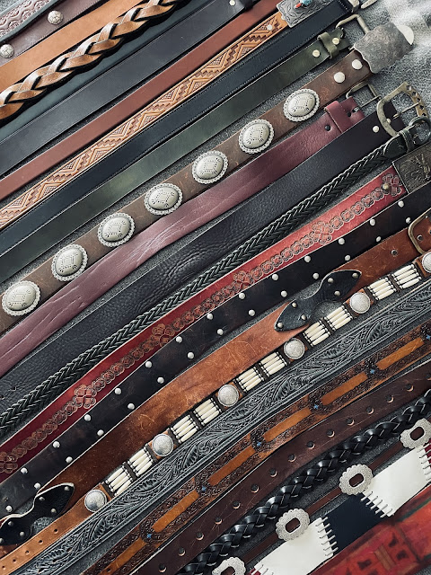 Though I've talked about my vintage belt collection here before, and earlier this week, I talked about recent belt additions to the shop, I wanted to show you my latest and most up-to-date collection of my own.